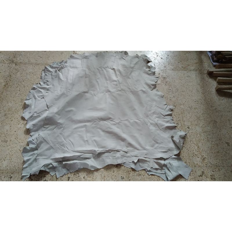 Kulit domba/kambing polos warna white blue untuk ecoprint, tekstur halus dan lembut, harga per feet 17.500. Ready mulai ukuran 3 feet. ukuran per feet 30 x 3