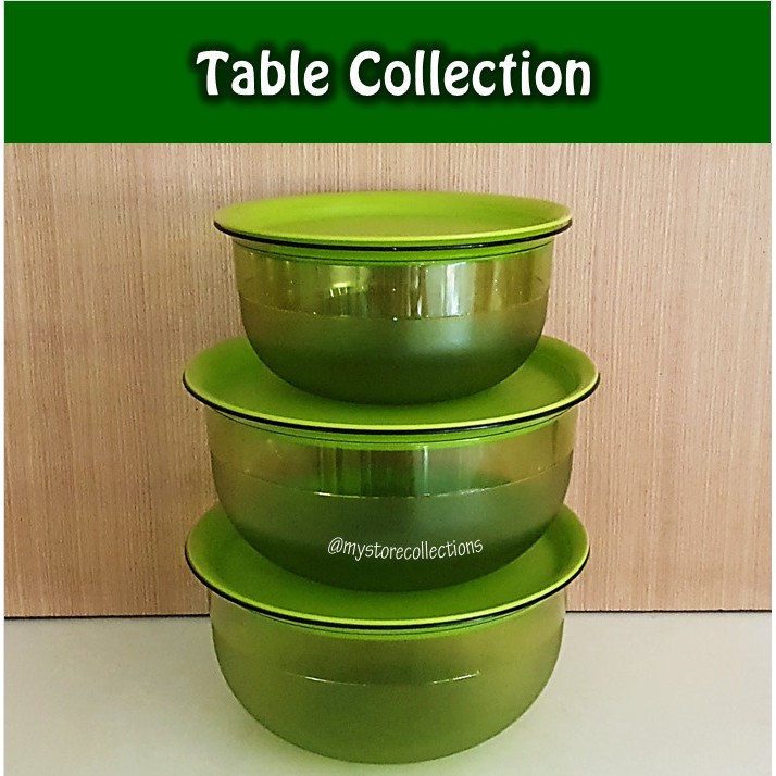 Table Collection Green SetKegunaan : Wadah saji untuk makanan berat.Ukuran:a. 2 L / d. 22 cm / t: 11,1 cm (1) b. 3,5 L / d. 26,1 cm / t. 12,4 cm (2)Fitur : 1.Wadah transparan sebening kristal, sangat elegan.2.Makanan dan minuman di dalam wadah terlihat sehingga menambah menariknya tampilan wadah. Wadah transparan juga memudahkan melihat makanan atau minuman apa yang ada di dalamnya.3.Cover bisa digunakan sebagai tutup dan juga sebagai alas.4.Dapat disimpan secara nesting, sehingga menghemat tempat saat sedang tidak digunakan.5.Terbuat dari PC yang tidak mudah retak atau pecah dan tidak meninggalkan noda. Material ini juga menghasilkan base hijau transparan sehingga dapat menampilkan kesan produk yang elegan.6.Aman untuk menghangatkan makanan/minuman dalam microwave.7.Dilengkapi dengan cover yang dapat juga berfungsi sebagai piring penyaji buah-buah segar ataupun kue-kue jajanan pasar.8.Tepi base produk ini melengkung keluar sehingga memudahkan pengguna untuk mengangkat atau memindahkan wadah.9.Bagian dalam dari base ini tidak bertekstur sehingga noda makanan tidak akan melekat dan mudah membersihkannya.10.Sangat ideal sebagai wadah penyajian sup, salad, es buah, masakan berjenis kari, ataupun aneka makanan lain terutama yang berkuah.NB : MOHON TANYAKAN KETERSEDIAAN BARANG TERLEBIH DA