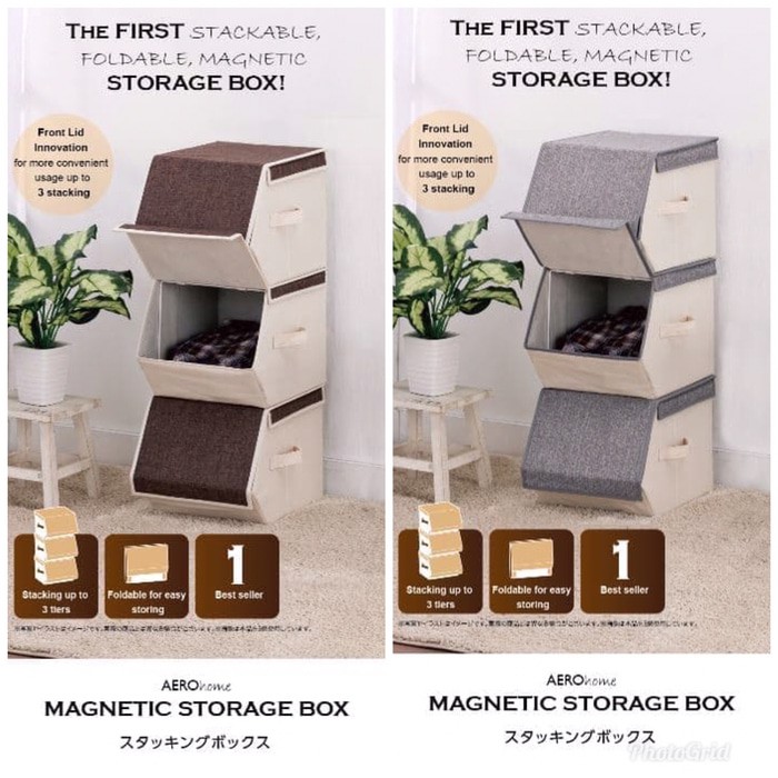 READY STOCK!!!!Kami hadirkan untuk anda semua, MAGNETIC STORAGE BOX (NO.1 TOP HOT SELLING DI JAPAN)KUALITAS JAPAN YAH.. BUKAN SEPERTI YG BEREDAR DI PASARAN.. :)TERSEDIA DALAM 2 WARNA :1. BROWN2. GREY"AERO HOME" STORAGE MAGNETIC BOX adalah barang paling laris di JEPANG Dengan bahan Polyester dengan kualitas tinggi dan sangat kokoh, sehingga sangat cocok untuk dipakai untuk apa saja.. Isi kemasan 1 PcsUkuran kemasan : 25 x 28 x 2,5Ukuran Jadi : 25 x 35 x 25Bahan : PolyesterLoad Capasity : 12 KgDapat di tumpuk menjadi 3