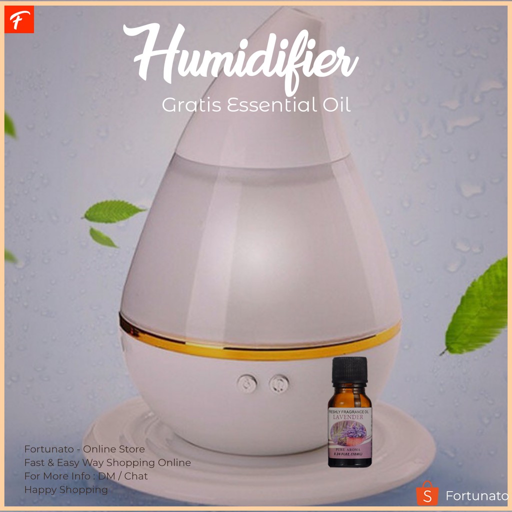 Humidifier ini hadir dengan design seperti tetesan air. Dapat menampung hingga 250ml air sehingga dapat digunakan untuk waktu yang lama dalam sekali isi ulang air. Juga dilengkapi ultrasonic high frequency untuk menghasilkan air yang sehat dalam bentuk embun. Natural Moisture from The HumidifierAlat ini akan mengeluarkan mouisture air yang membuat udara tetap terjaga kelembabannya terutama diruangan ber-AC. Selain moisturizer dapat juga dimanfaatkan sebagai aromatherapy dengan menggunakan essential oil.Ultrasonic High FrequencyMelalui getaran frekuensi tinggi, merubah air menjadi mikro partikel kecil dan menghasilkan embun air yang sehat. Cocok untuk menjaga kesehatan Anda karena suhu sangat berpengaruh untuk kesehatan tubuh.360 Degree MistKabut yang dihasilkan dari humidifier ini dapat memenuhi seluruh ruangan Anda karena embun yang keluar menjangkau hingga sudut 360 derajat.Large CapacityHumidifier ini dapat menampung hingga 250ml air sehingga Anda tidak perlu repot mengisi ulang humidifier ini secara berkala.Gratis Essential Oil!Setiap pembelian produk ini, Anda akan mendapatkan 1 buah Essential Oil berukuran 10ml secara cuma-cuma. (Varian akan kami berikan secara acak).Produk yang Anda dapatkan dalam Produk Ini:1 x Mini Ultrasonic Air Humidifier Aroma Therapy1 x Manual Book1 x Kabel USBGratis: 1 Essential Oil (random)#promo #airhumidifier #essentialoil #diffuser #aromatherapyNote: *Logo produk dikirim secara acak tergantung stock persedian yan