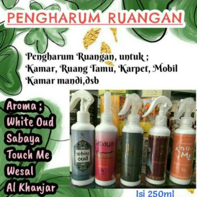 WAJIB CEK STOK SEBELUM ORDERJIKA AROMA YG DIMINTA TIDAK ADA TANPA CEK STOK AKAN DI KIRIM STOK YG TERSEDIA NO COMPLAINParfum ruangan dengan aneka aroma anda akan d bawa ke suasana mekkah madinah dubai abudhabi yaman D jamin wanginya semerbak tanpa perlu menghidupkan bukhur lgDengan aneka aroma yg nyaman merelaksasi pikiran mngurangi kejenuhan & stress andaWanginya tahan lama Isi 250mlTersedia berbagai aroma -wesal-white oud-touch me-sabaya-royal oud-khanjar-mangga-lemon-strawberryROCOMENDED SELAIN KHANJARKHANJAR BERAROMA SANGAT STRONG LEBIH COCOK UNTUK ORANG