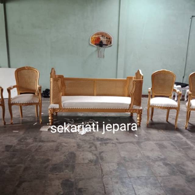 1kursi doyok rotan4kursi racoco rotanbahan,kayu jati kering kombinasi rotanfinishibg cat duco dan kain
